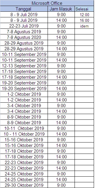 2019Daftar Hadir (10) Peminjaman Ruangan (8) Jadwal Pelatihan Microsoft 2019jadwal_pelatihan_microsoft_04092019.jpg DownloadDetailsJadwal Pelatihan Microsoft 2019jadwal_pelatihan_microsoft_04092019.pdf DownloadDetails Powered by Phoca Download